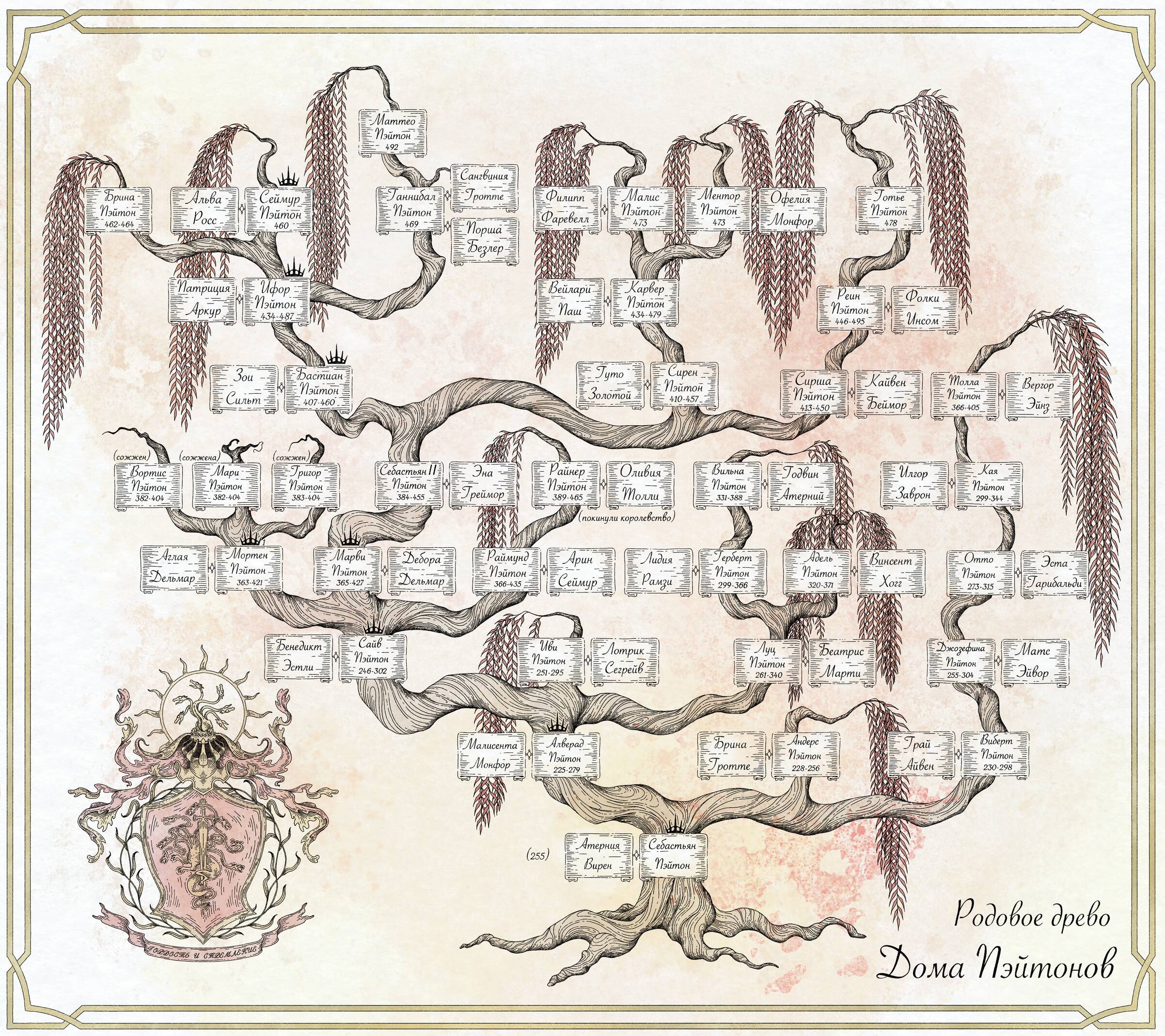 Придумать свой дом не можно, а нужно. Вы сами выбираете «семейное дело» в пределах того, что указано в географии. В качестве дополнения к тому, что там написано, следует добавить, что все рудники расположены на севере (т.е. ваш дом не может добывать серебро и золото на западе или на юге), а добычей жемчуга в большей части ведает дом Пэйтонов. | |